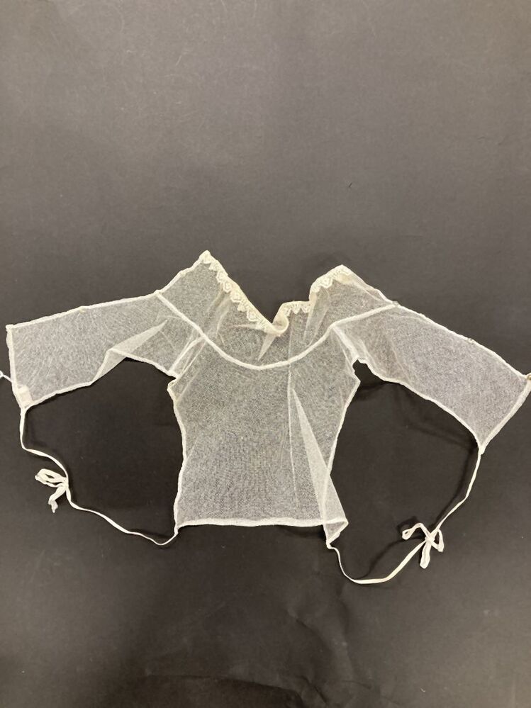 Guimpe, inzetvestje van witte tule met machinaal kantje langs boord