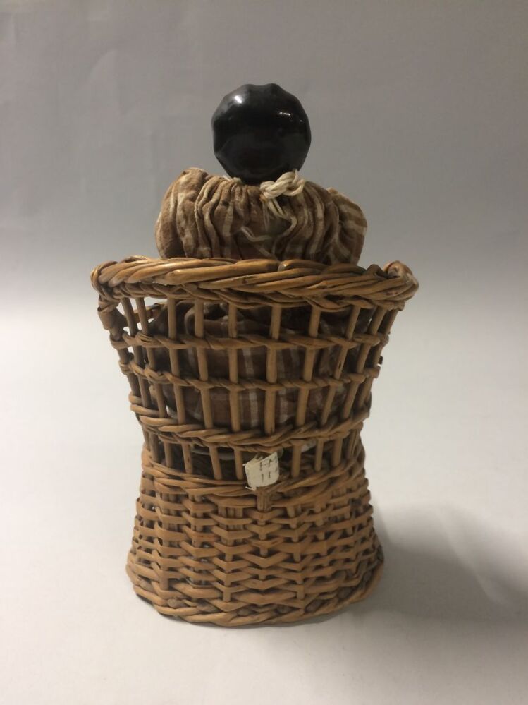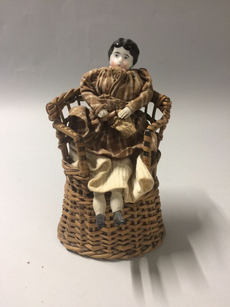 Rieten leunstoel met bijbehorende breiende pop
