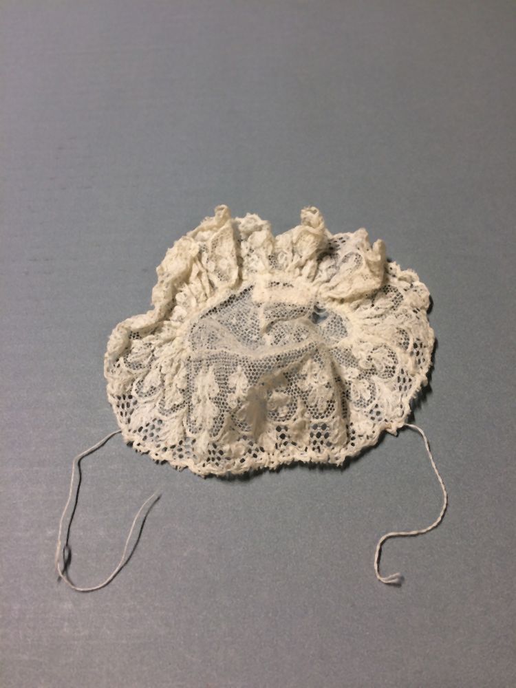 Kleine mutsen voor binnenshuis, met een enkele of dubbele sierstrook als rand aan de voorkant en tot de oren reikend; werden door vrouwen in de 18e eeuw gedragen. (AAT) https://data.cultureelerfgoed.nl/term/id/cht/63d7c4b6-1fa2-4798-b701-ea7115827662