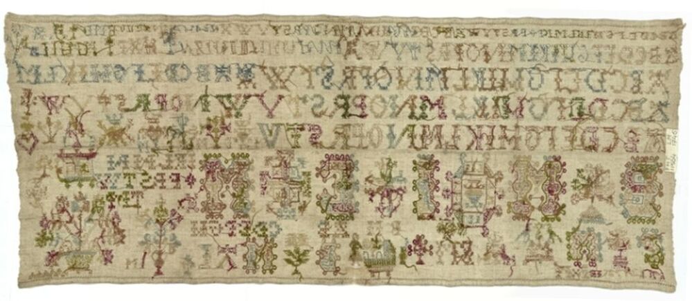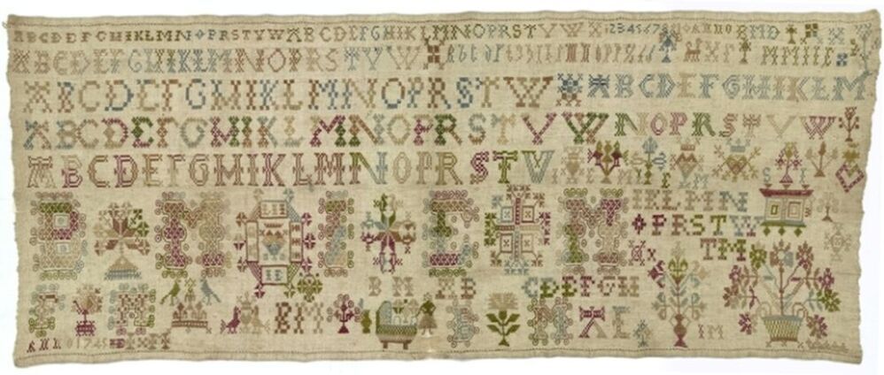 Merkletterlap met veel initialen, gemerkt B.M.1745