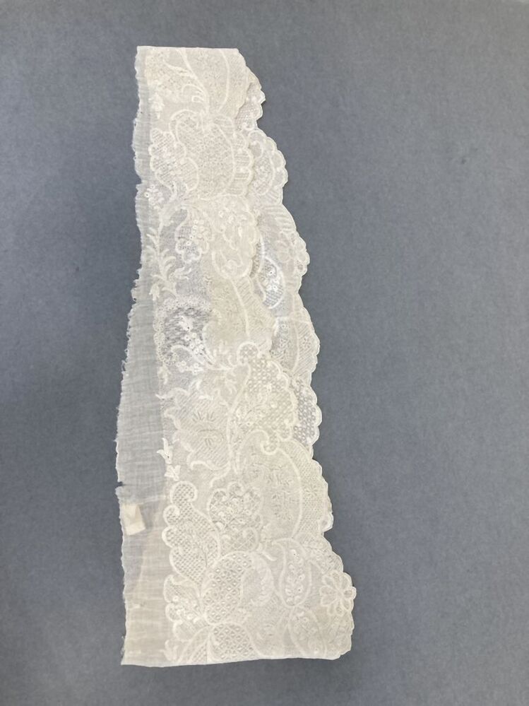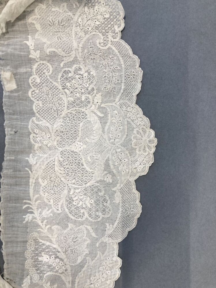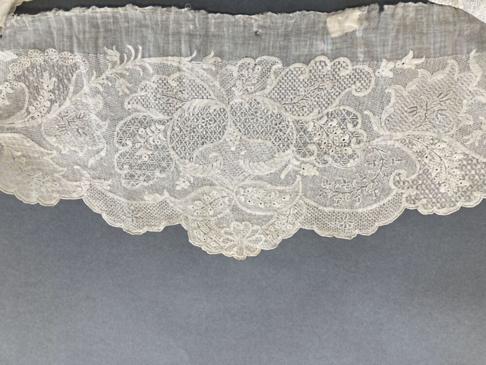 Enkele mouwlubbe van wit batist, geheel geborduurd met perzisch ajour en schaduwborduurwerk
