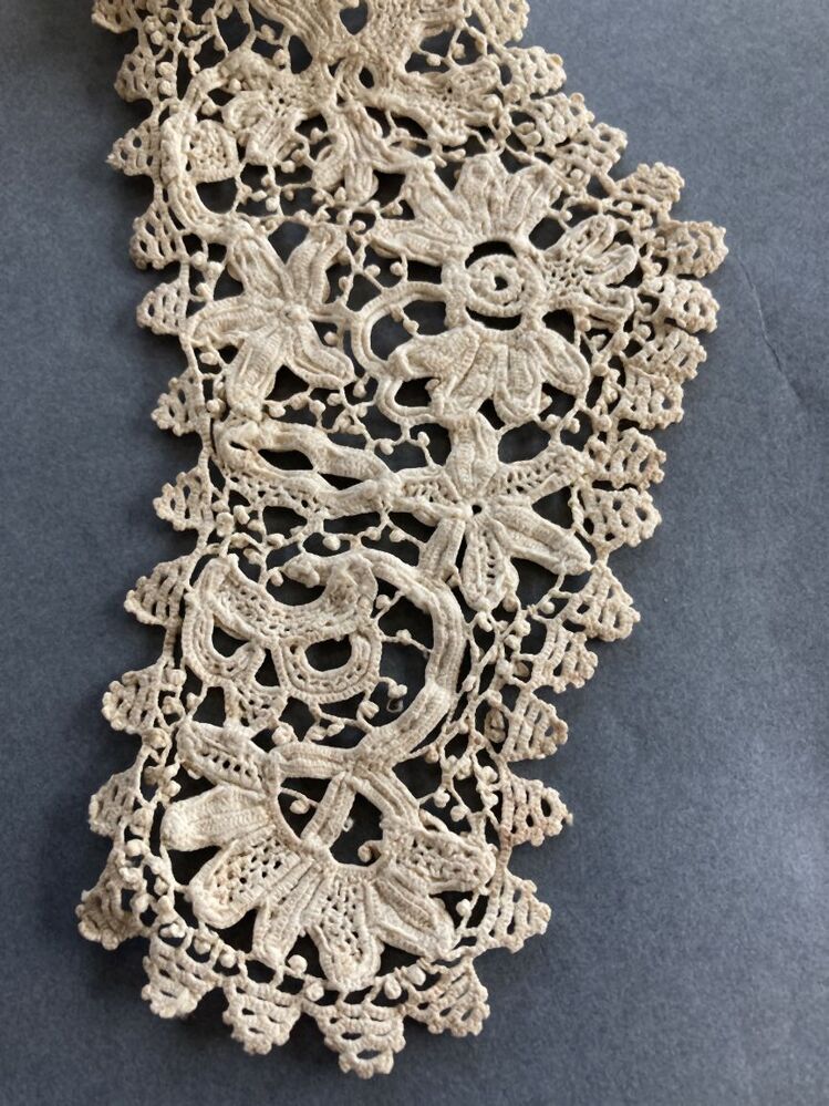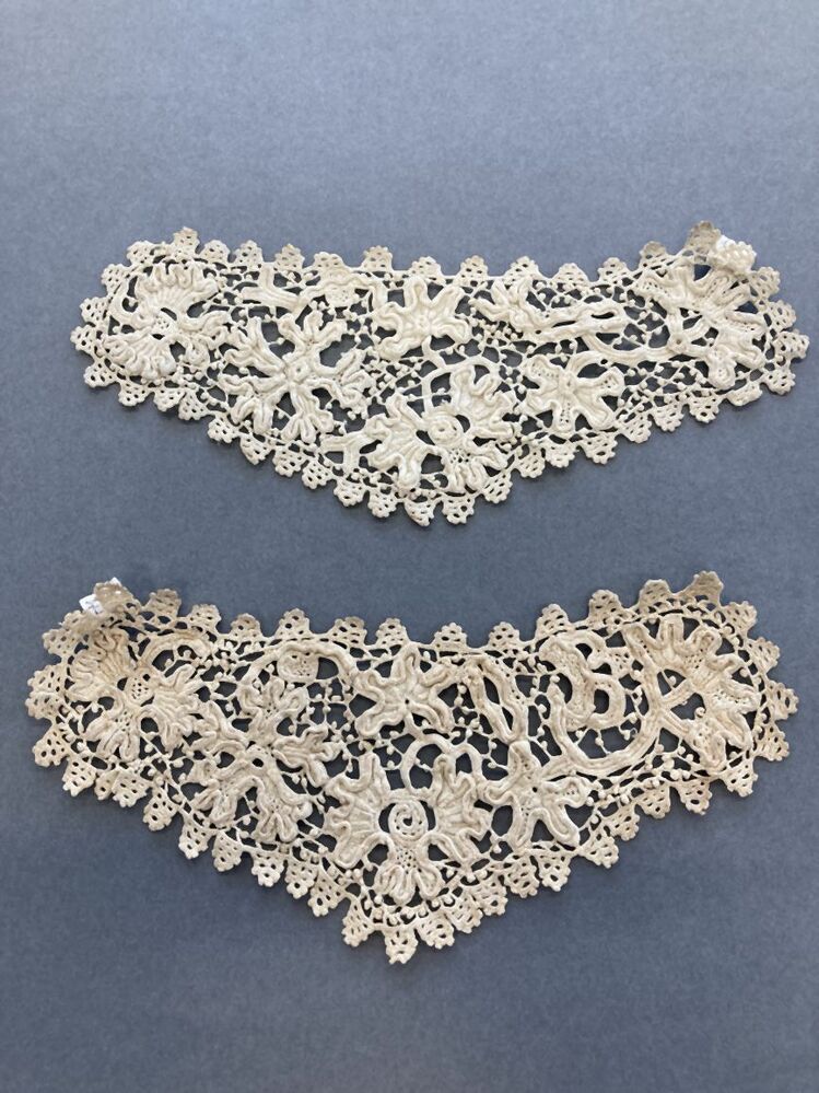 Paar manchetten of mouwlubben van "Iers haakwerk" met floraal patroon met relief van wit katoen