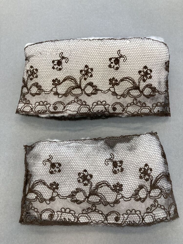 Paar manchetten of mouwlubben van zwarte tule met verschillende mazen, met borduurwerk