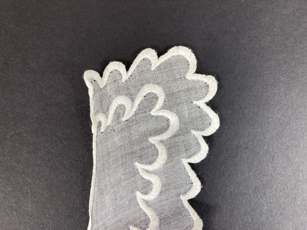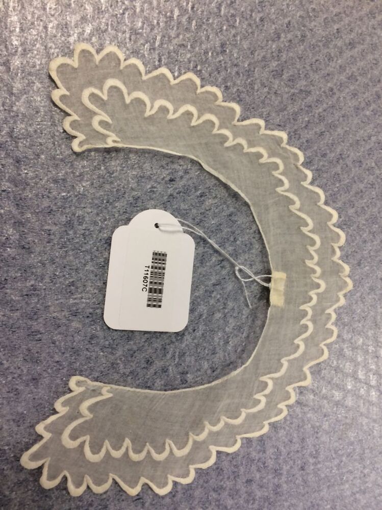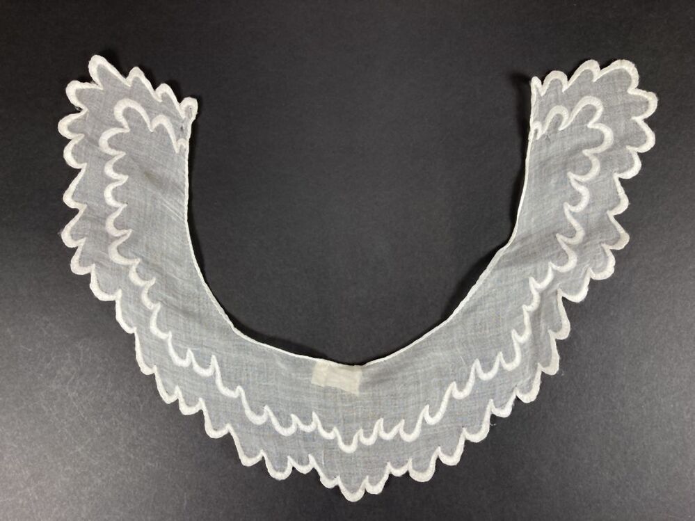 Rond plat kraagje van transparante neteldoek, geborduurd in festonsteek