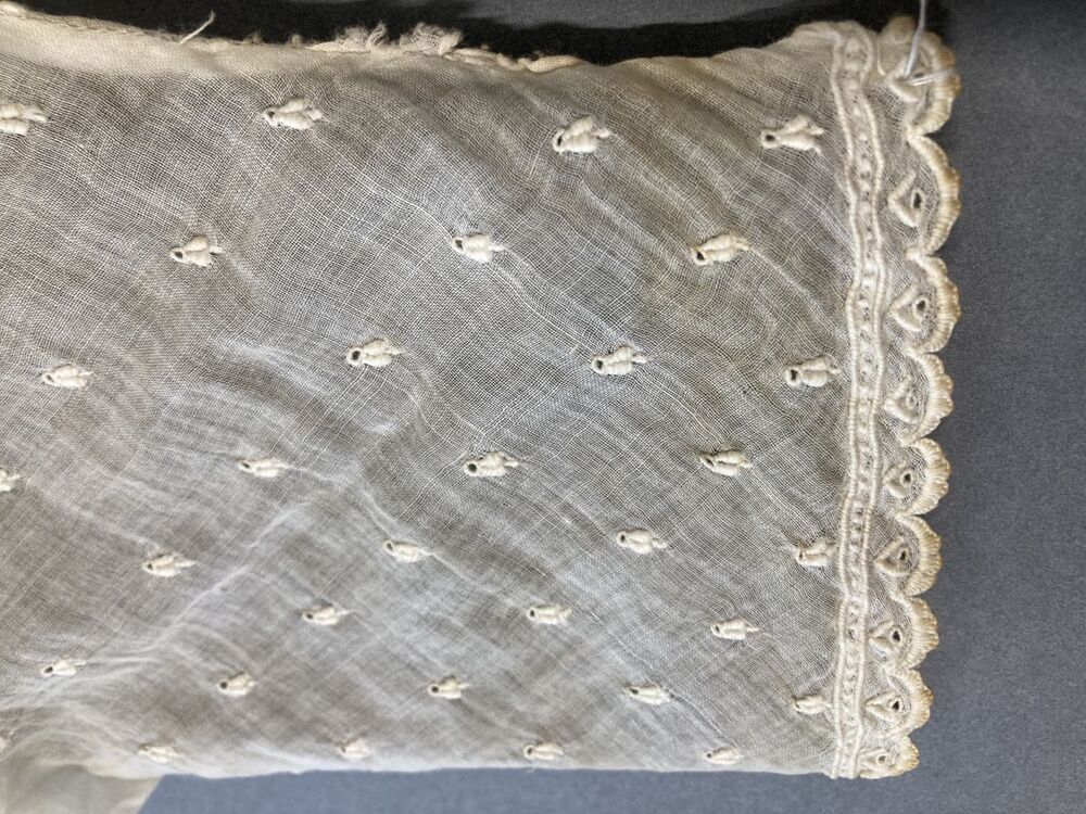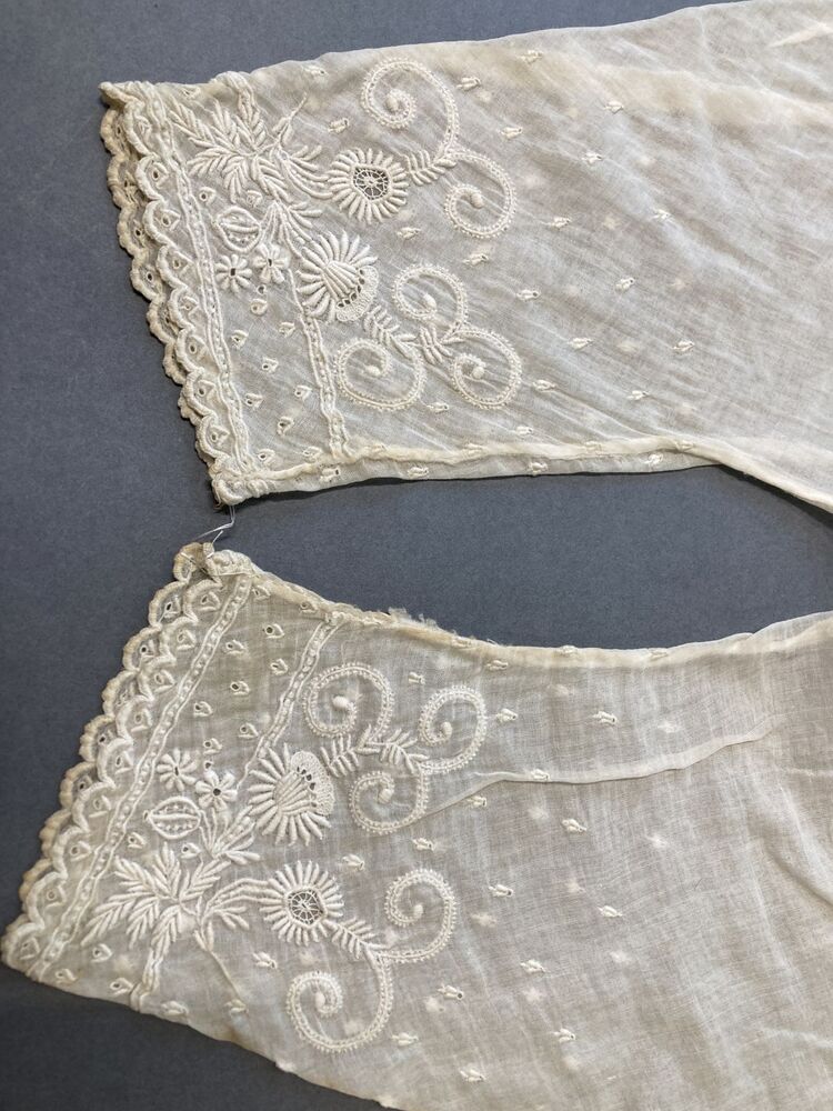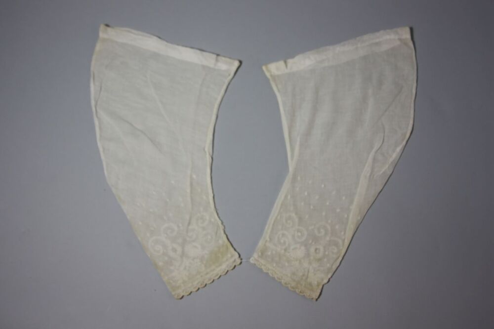 Paar ondermouwen van neteldoek met motief van Frans borduurwerk