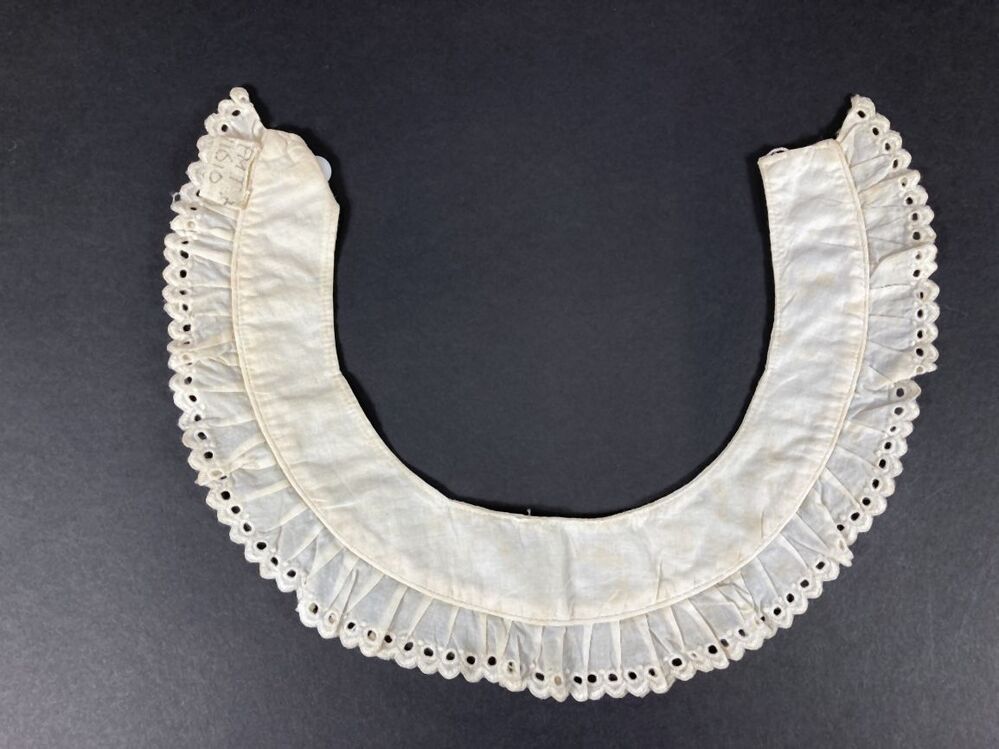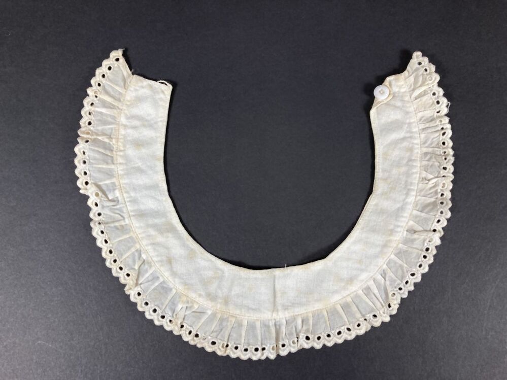 Klein rond kraagje met rolnaad en geschulpt broderie