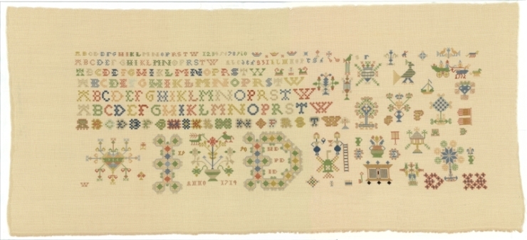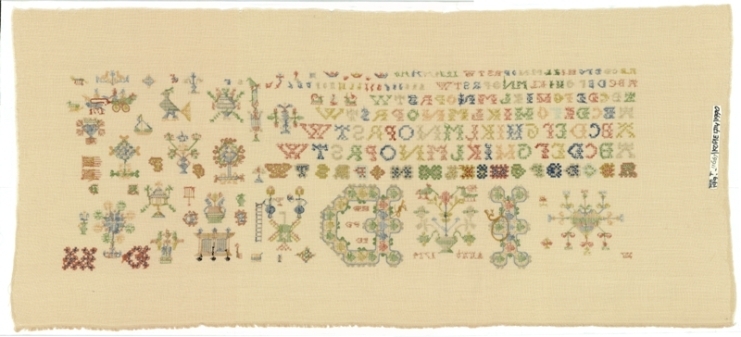 Lettermerklap, kopie van lap gemerkt I.D. anno 1714, gemerkt W. 1990