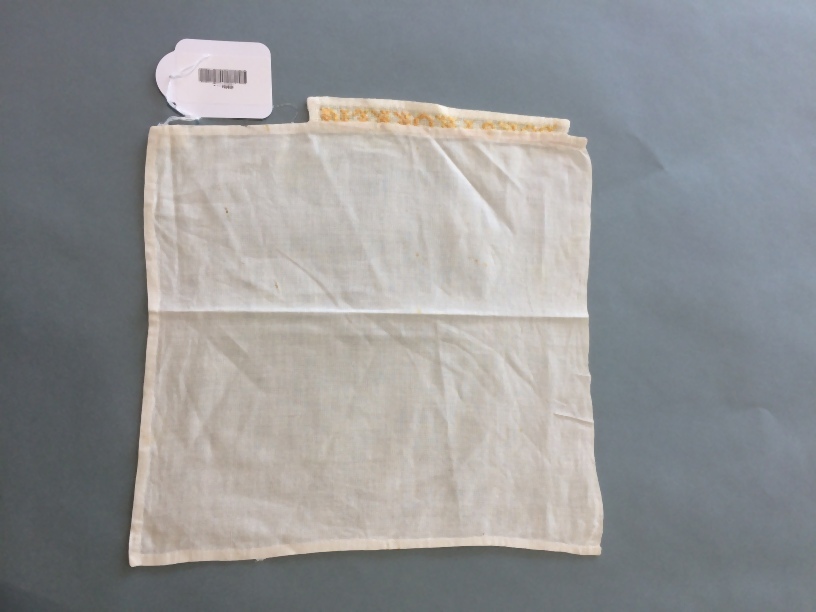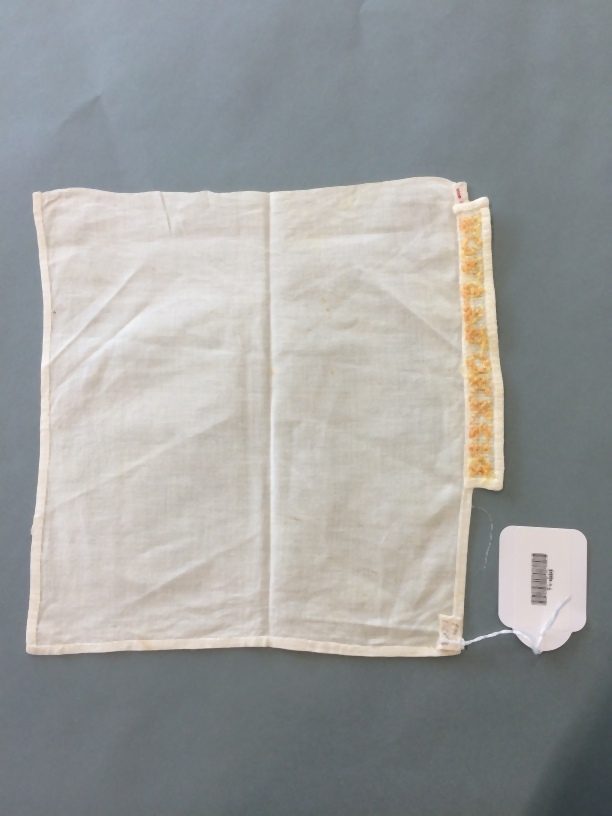 Doekje voor in de linnenkast waarop de tekst, BORSTROKKEN in oranje kruissteken