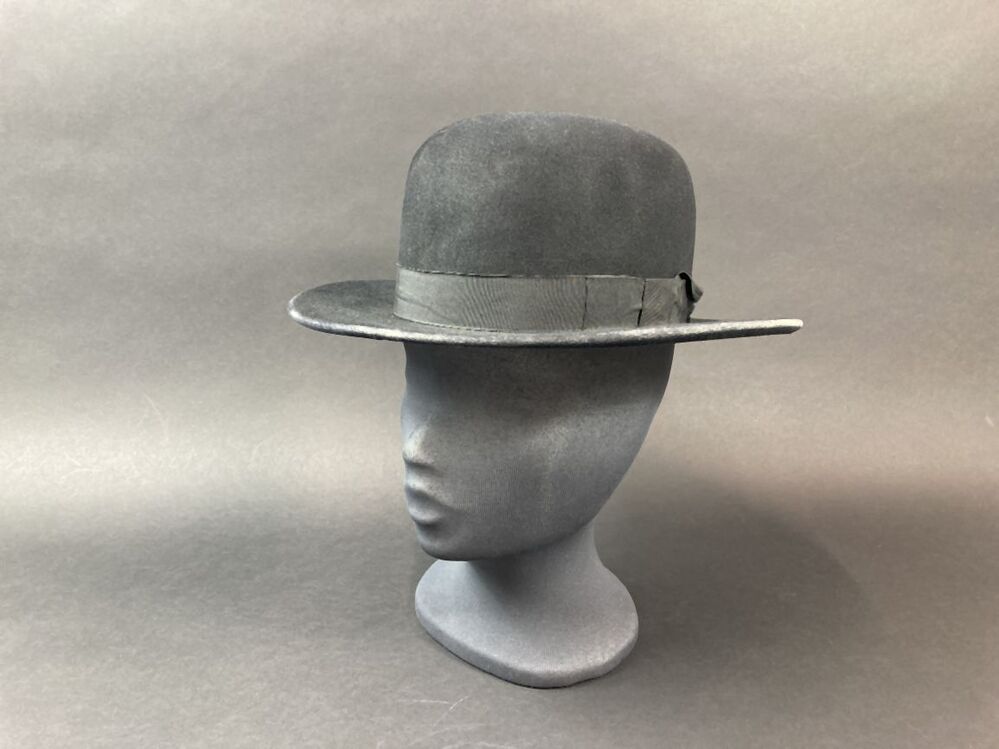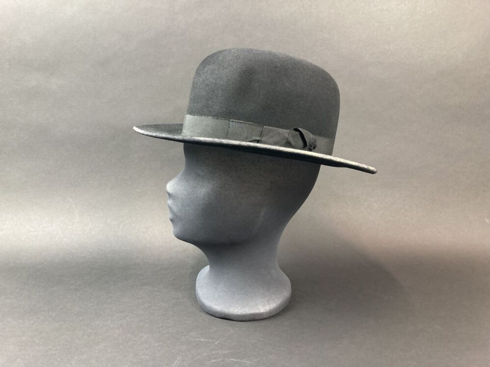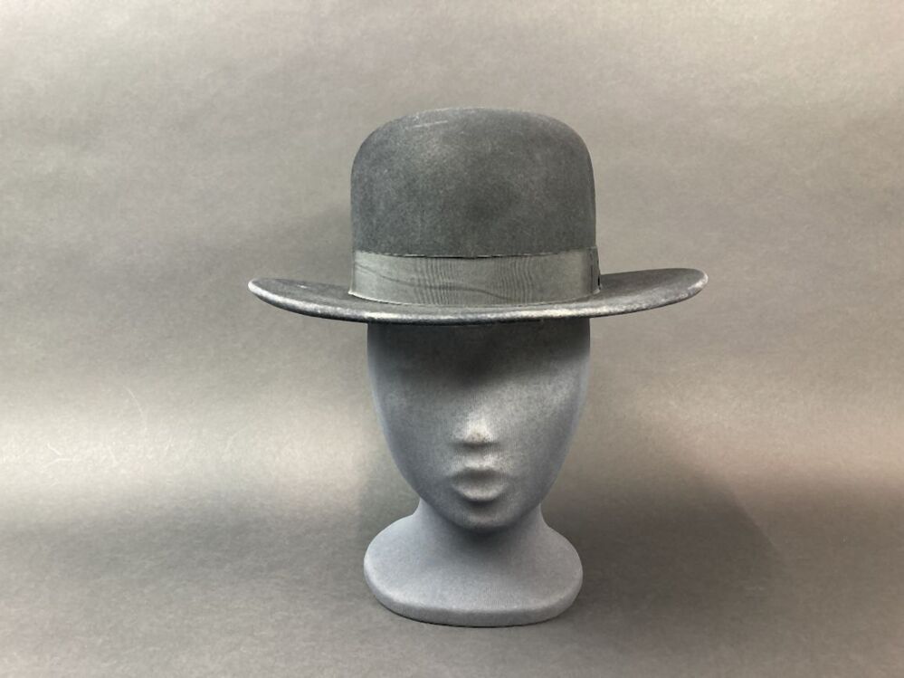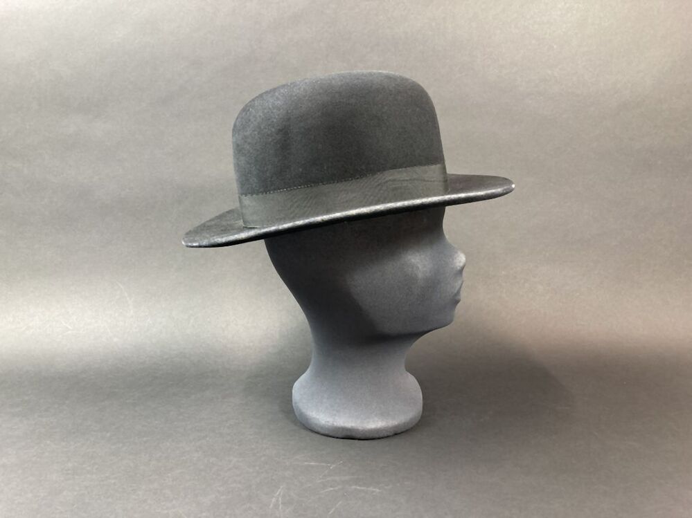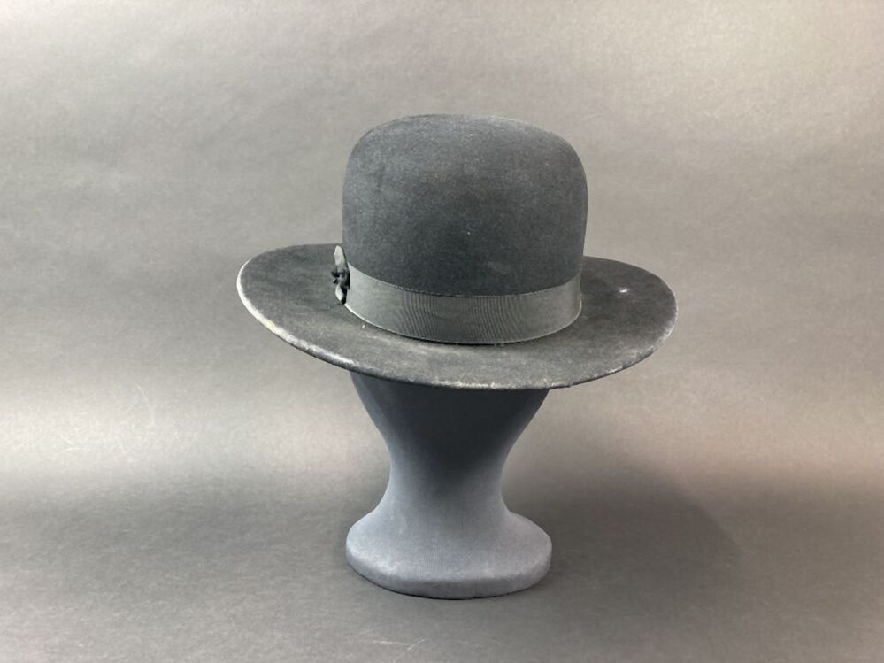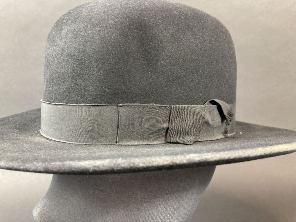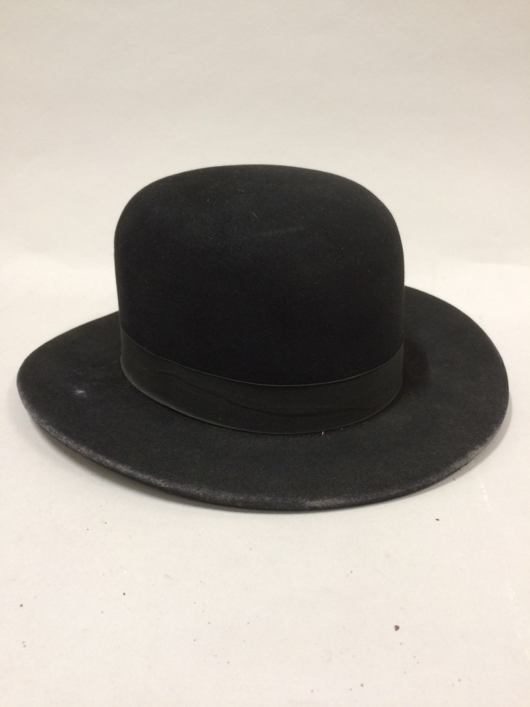 Dames paardrijhoed van zwart vilt, bolhoed met vlakke rand