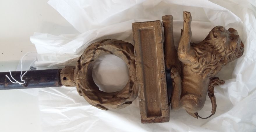 Zwarte vaandelstok, gouden leeuw