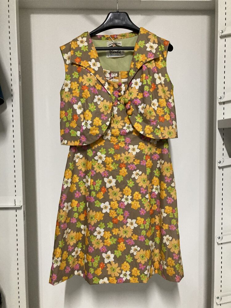 Bolero, onderdeel van jurk met bolero van gebloemd katoen, beige met geel en groen