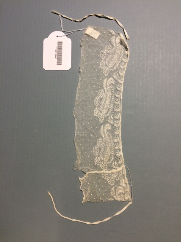 Floddermuts of mutsekant, onderdeel van groep van twaalf stukken mutsekant en acht bovenstukken