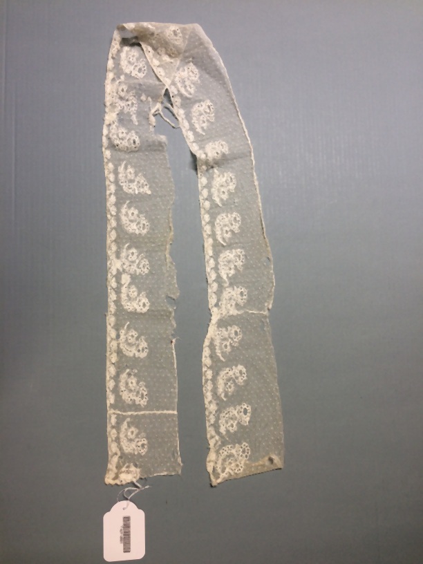 Floddermuts of mutsekant, onderdeel van groep van twaalf stukken mutsekant en acht bovenstukken