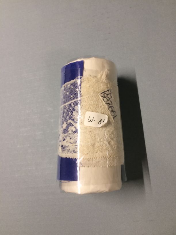 Floddermuts of mutsekant, onderdeel van groep van twaalf stukken mutsekant en acht bovenstukken