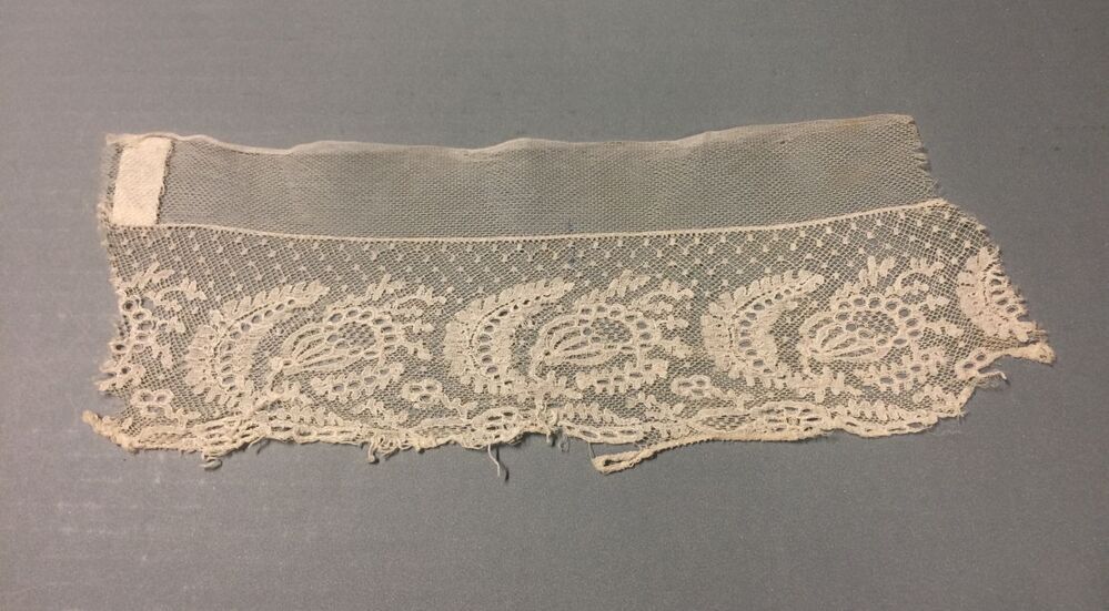 Bovendeel van floddermuts, onderdeel van groep van twaalf stukken mutsekant en acht bovenstukken