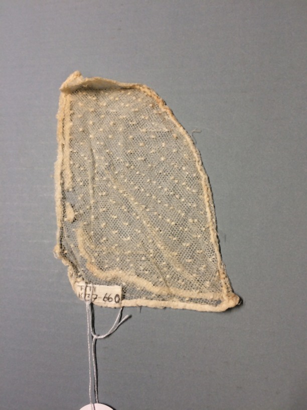 Bovendeel van floddermuts, onderdeel van groep van twaalf stukken mutsekant en acht bovenstukken