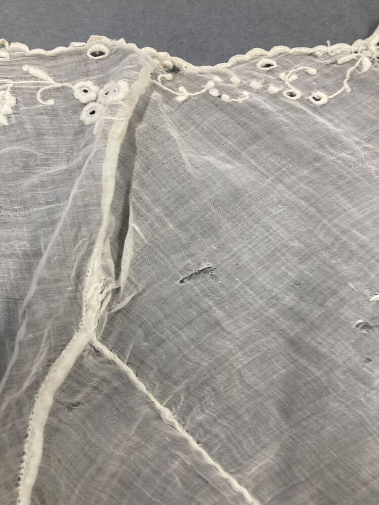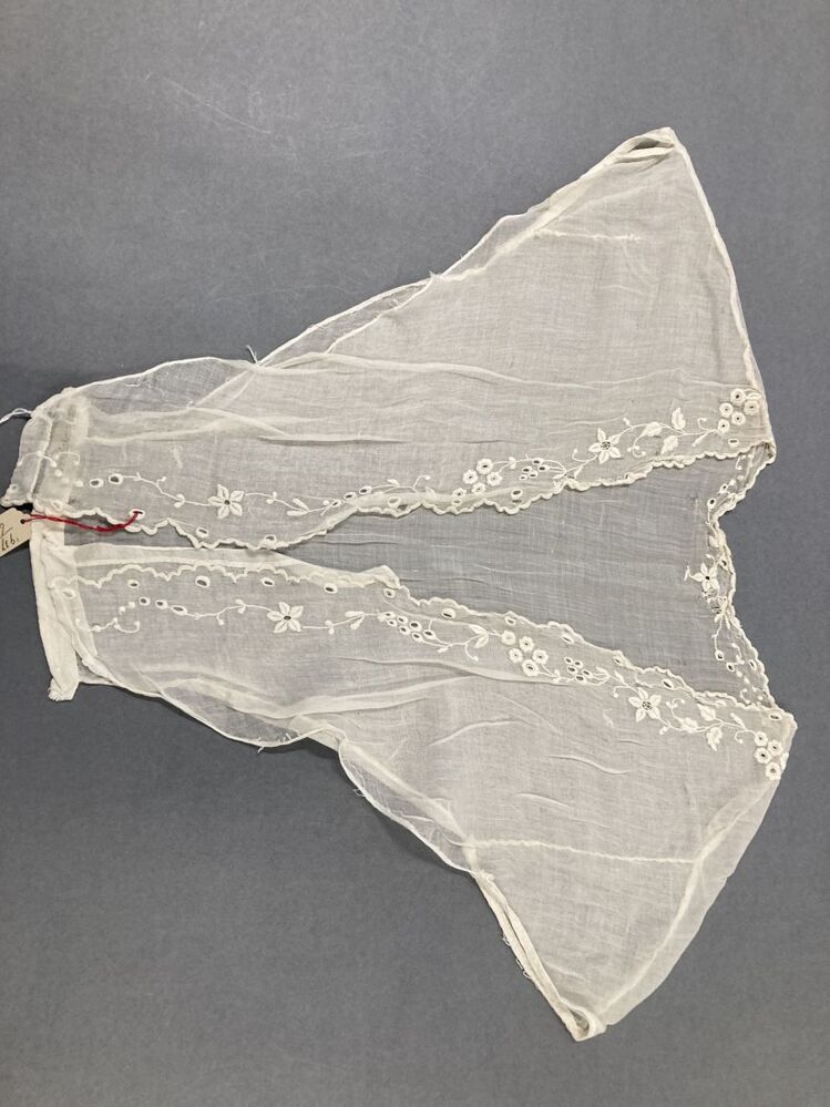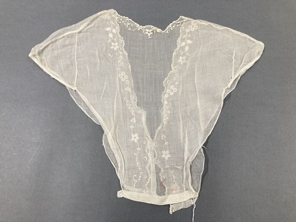 chemisette van batist met geborduurde bloemrank langs V-hals