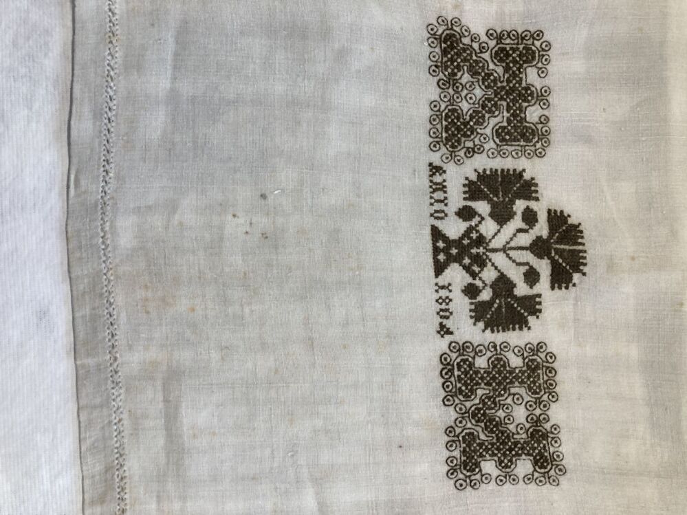 Klein wit linnen laken met zwart kruissteek borduursel AH 1804
