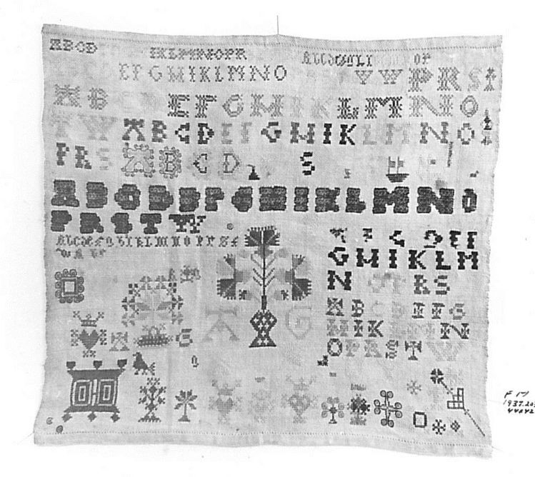 Lettermerklap met levensboom en initialen A.G.