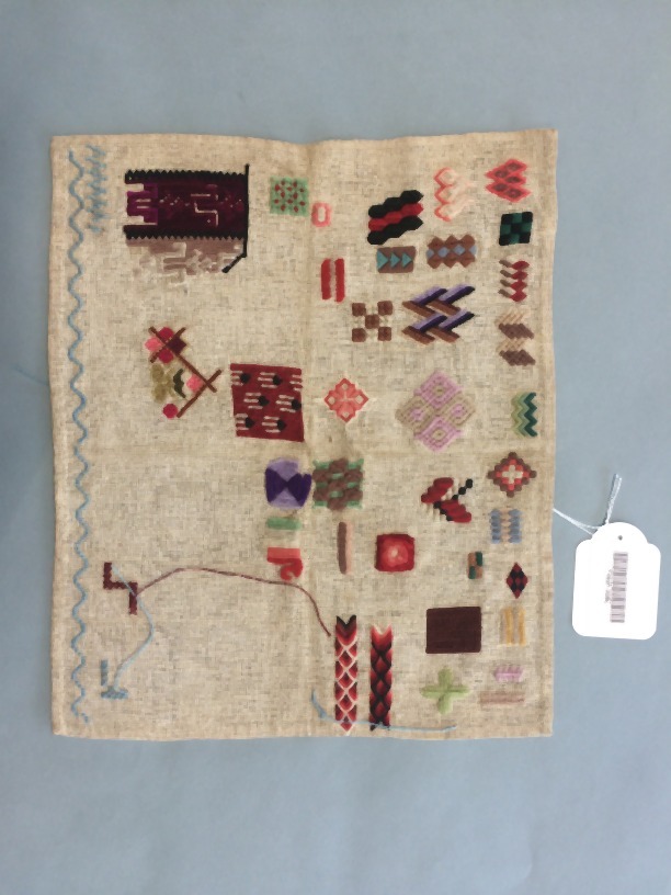 Verwijst naar werken die zich kenmerken door een patroon of ontwerp dat is uitgevoerd in met draad of fijn metaaldraad gemaakte steken. De patronen worden gewoonlijk uitgevoerd op stof, maar ook leer, papier of andere media kunnen worden gebruikt; de werken kunnen bedoeld zijn om ingelijst te worden of om kleding, bedtextiel, meubelbekleding, kussens, altaarkleden, ceremoniële voorhangen of andere zaken te versieren. (AAT)