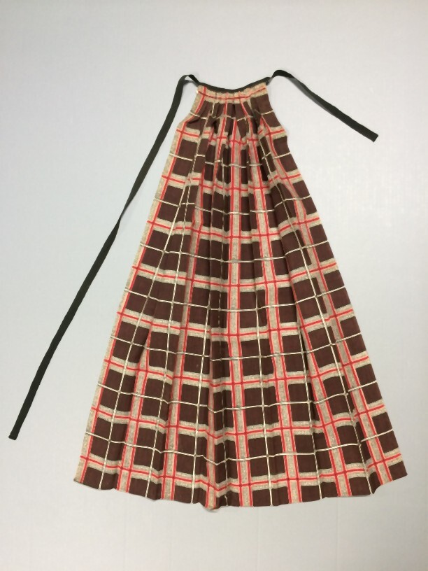 Schort, bruine ruiten en wit met rode strepen, smal model
