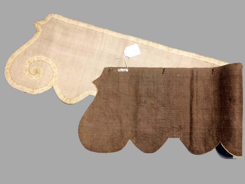 Drie stuks bedgordijnen behorend bij een houten ledikant