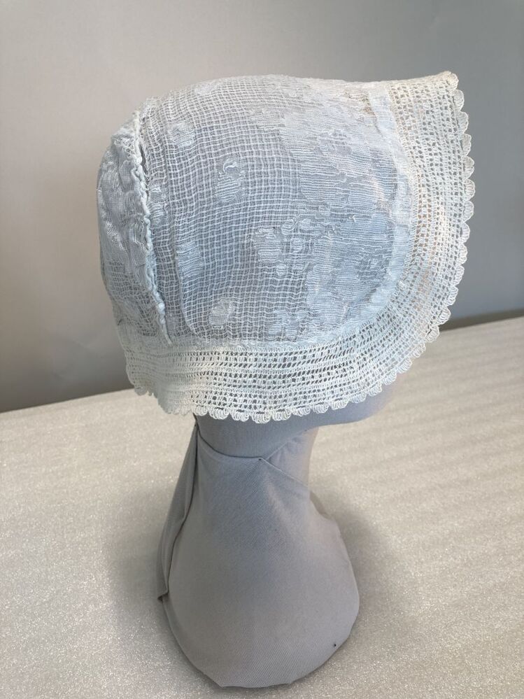 Muts van ajour geweven katoen met bloemen en machinale kantstrook rondom