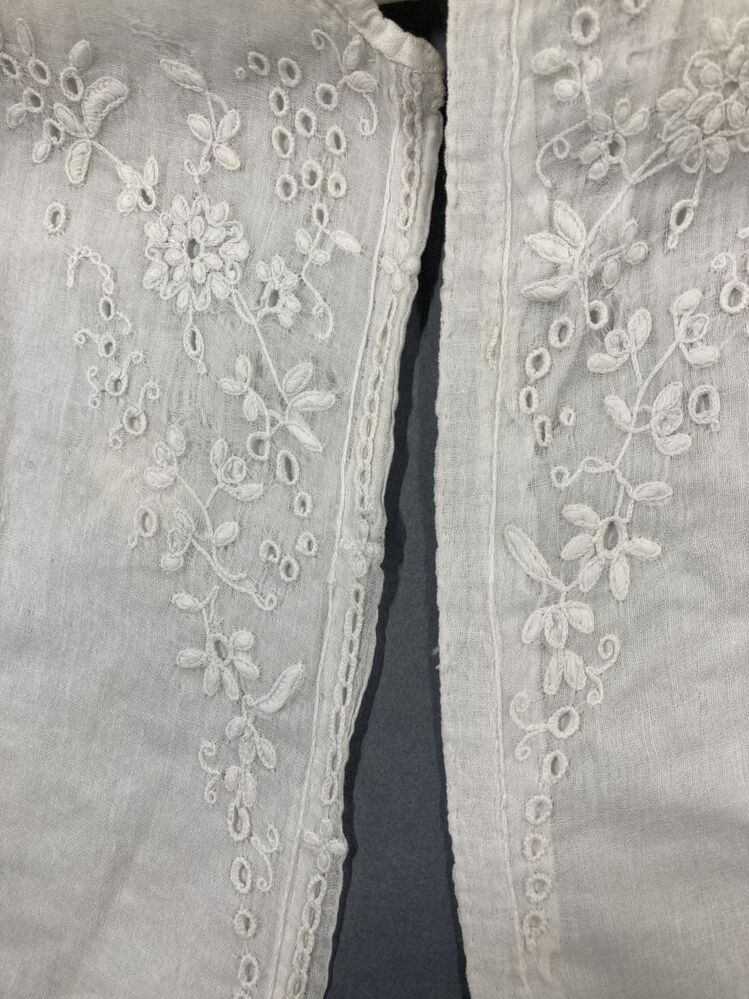 Chemisette van neteldoek, gevoerd met katoen, met tamboereerwerk