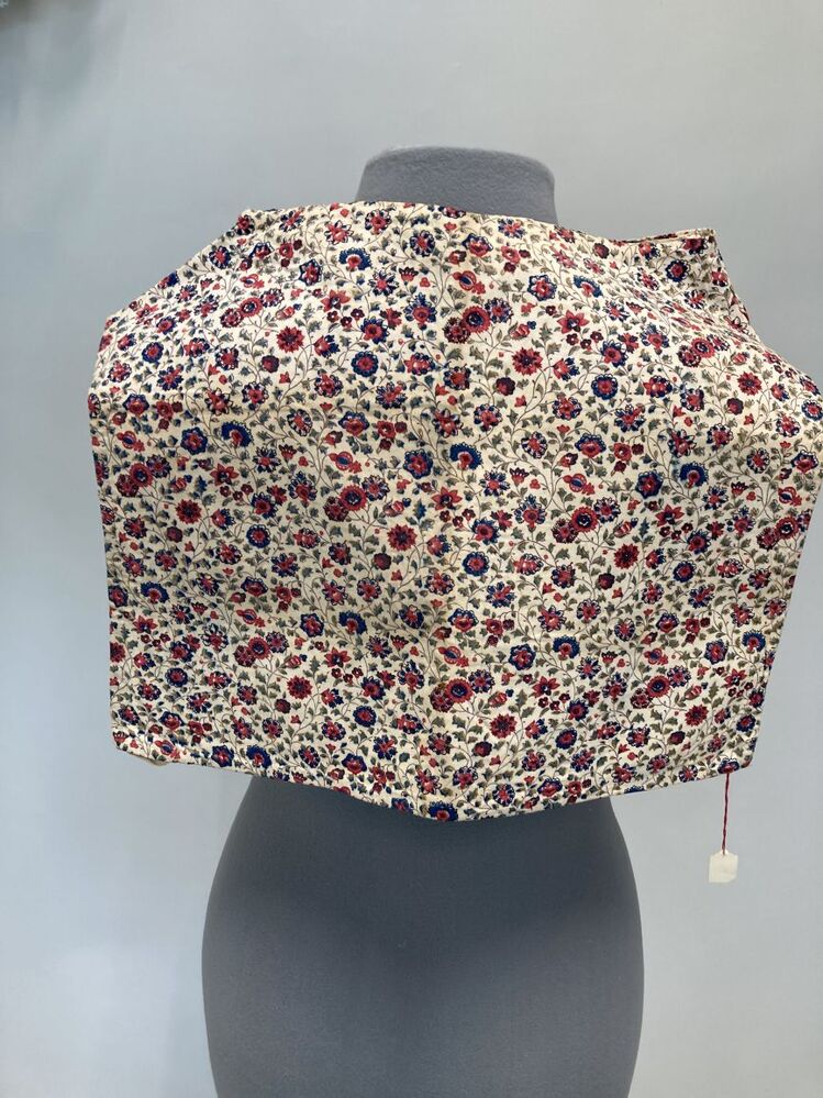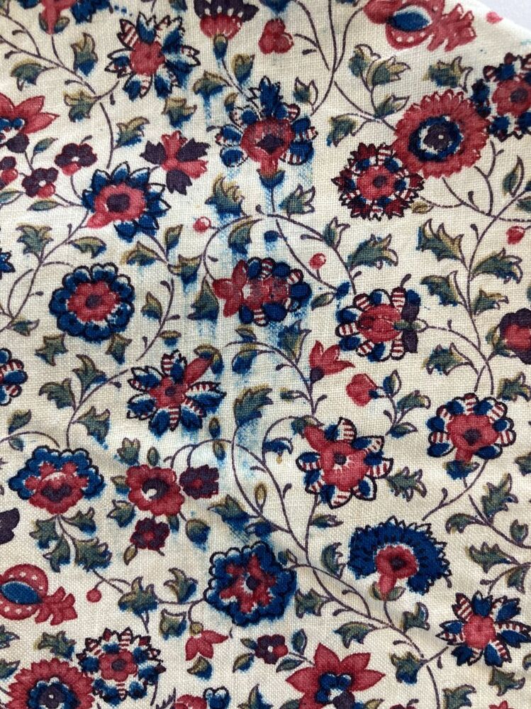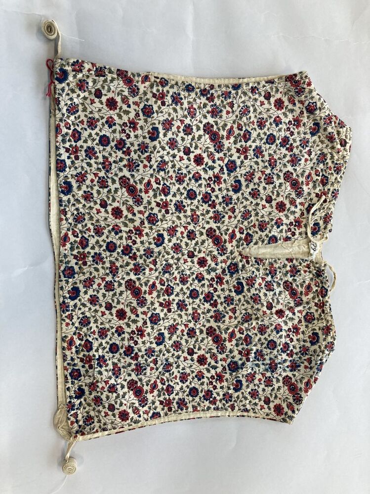 Bedrukt katoenen vrouwenkroplap ofwel onderst, met dunne slingerende ranken met kleine bloemen op witte grond