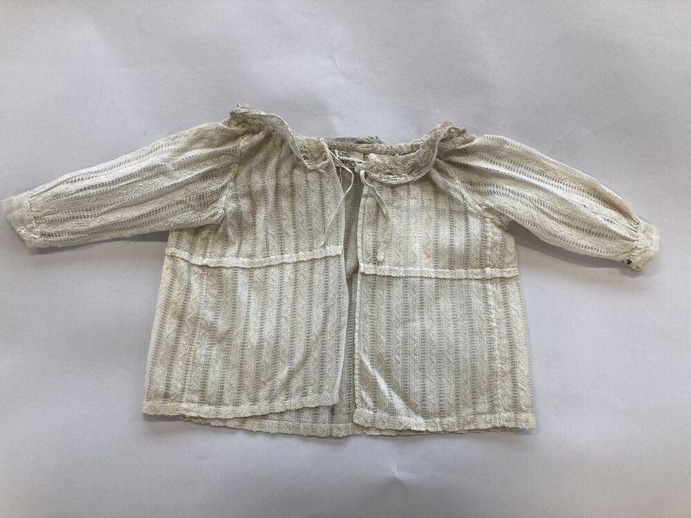 Japonnetje voor baby van witte katoen met verticale ajourranden