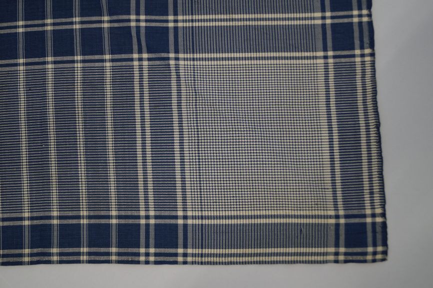 Driekante blauw-wit geruite zijden sjaal