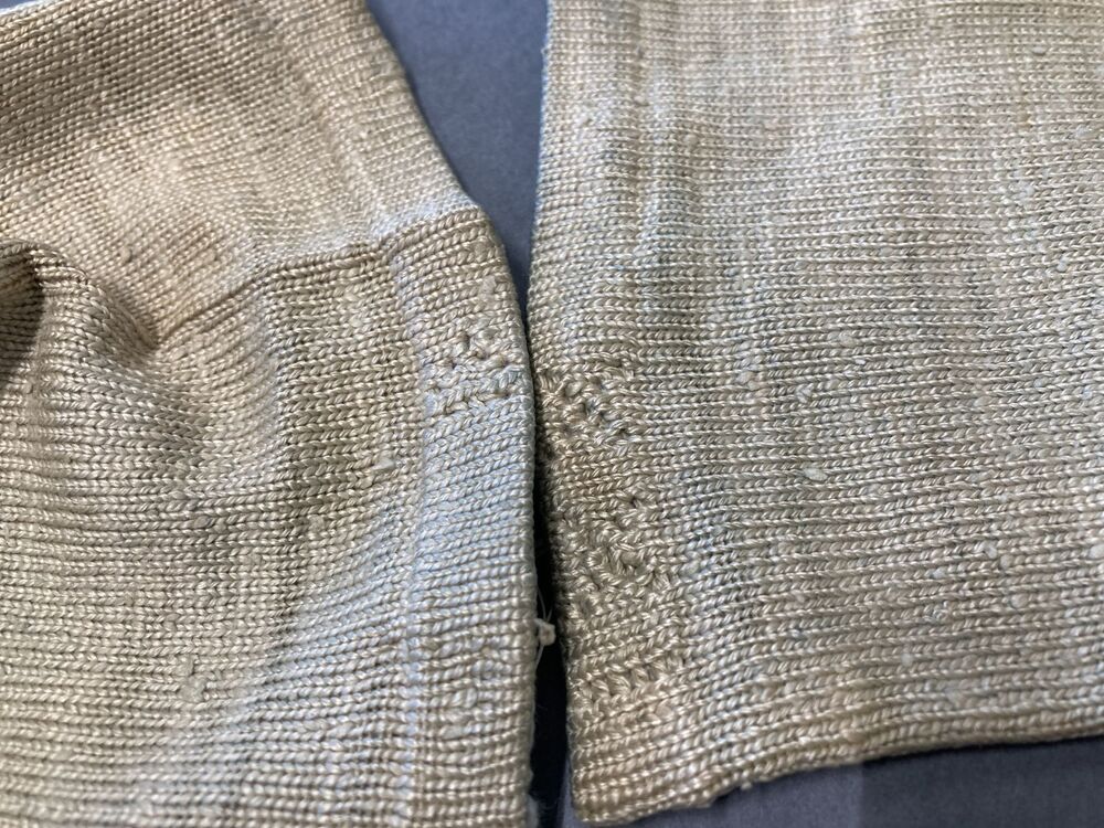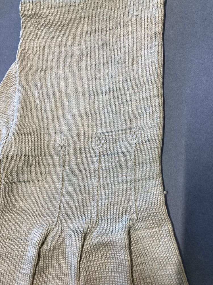 Paar handgebreide zeegroene zijden tricot handschoenen