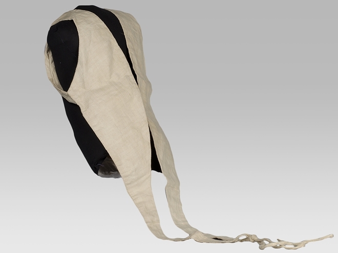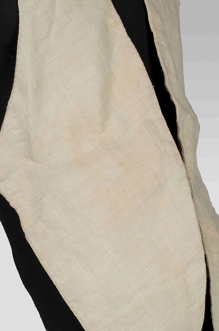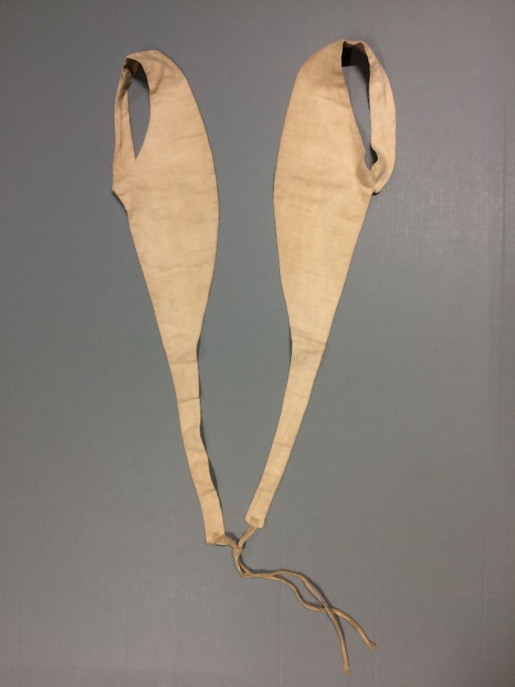 Tuigje bestaande uit twee delen, aan elkaar geknoopt met banden, van dubbel linnen met elk één armsgat