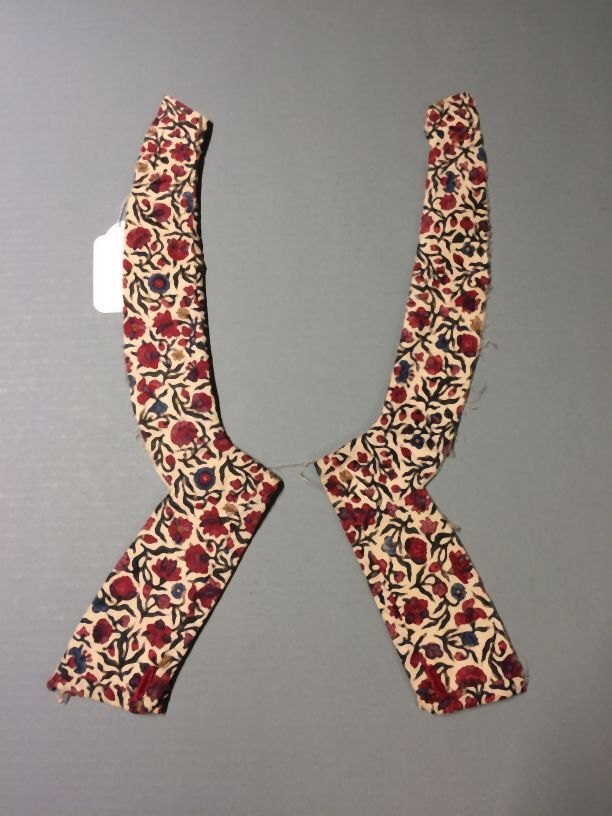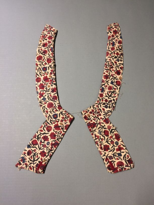 Twee incomplete sitsen mouwen met elleboogvorm, met strooimotief van bloemtakjes op witte grond