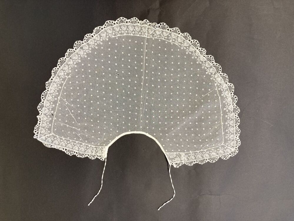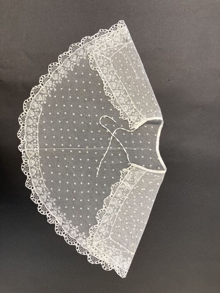 Wit kanten schouderkraag van tule met getamboereerde rand en motiefjes