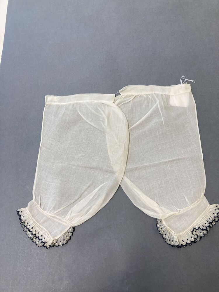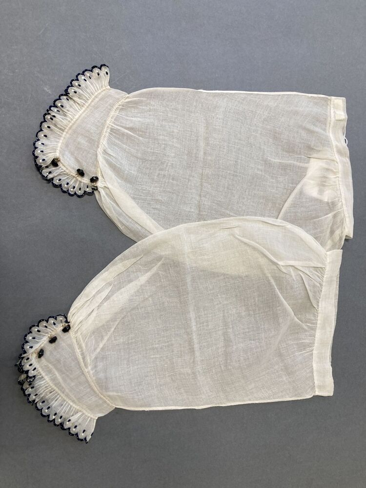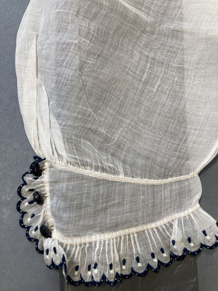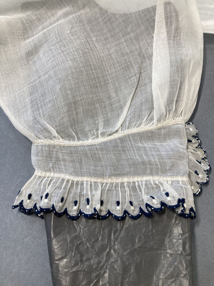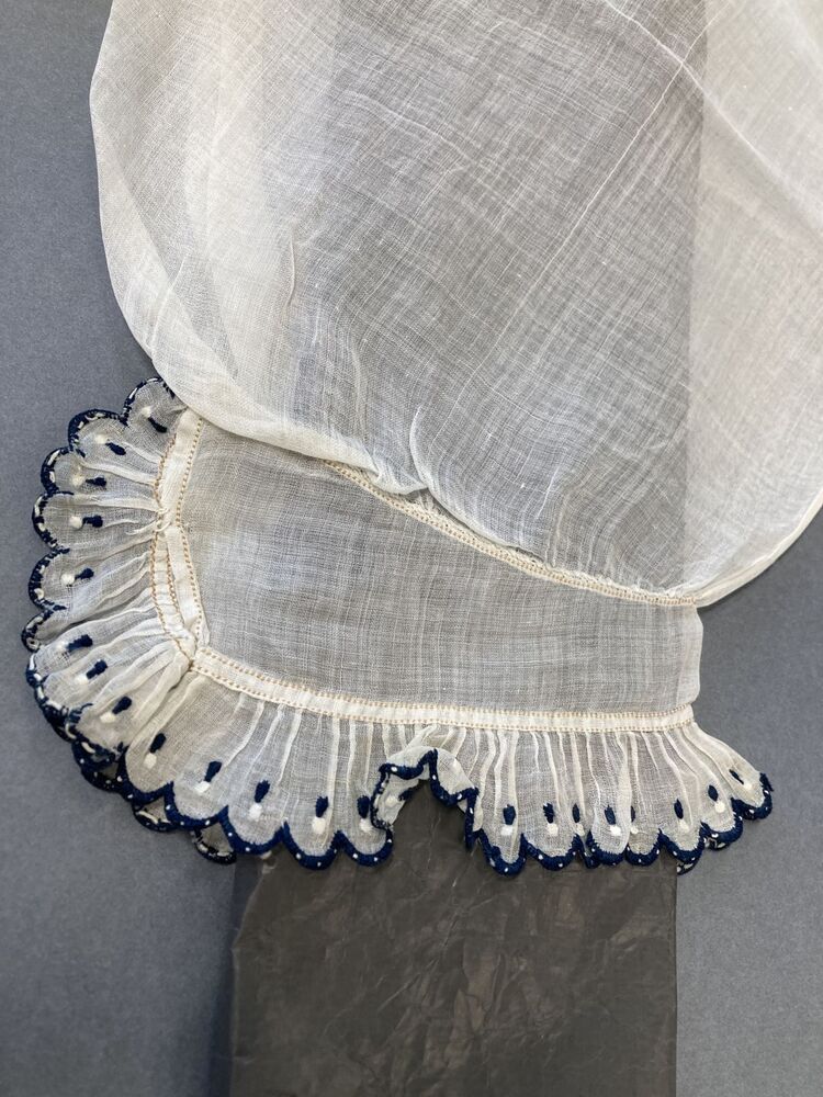 Paar wijde mouwen van neteldoek manchet is afgewerkt met donkerblauw