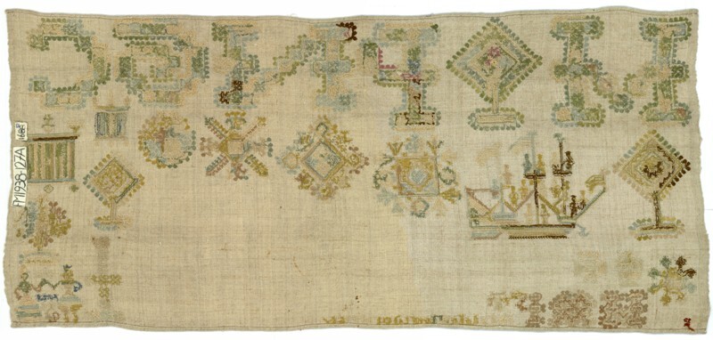 Textielwerken, meestal van fijne stof, waarop door vrouwen en meisjes in verschillende steken is geborduurd en die bedoeld zijn om in te lijsten. Ze werden doorgaans gemaakt door beginnelingen om hun vaardigheden te tonen. Kenmerkend zijn een combinatie van steken, motieven, letters en verzen, en vaak de voltooiingsdatum en de naam van de borduurster. (AAT-Ned) https://data.cultureelerfgoed.nl/term/id/cht/9af3e18e-7bc8-40d2-87ca-8eef2dfe2bc3