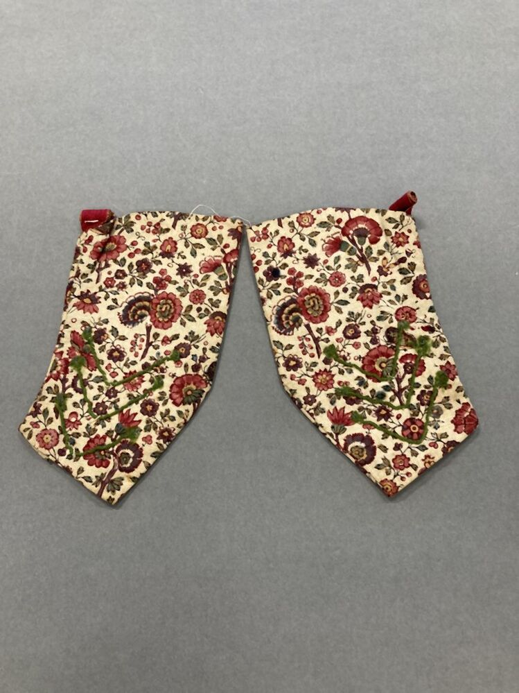 Bedrukt katoenen kindermouwtje, met ranken in ruitvorm waarin bloemetje op witte grond