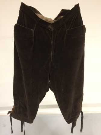 Bruine kniebroek van fluweel met gulpsluiting, zgn. schaatsenrijdersbroek