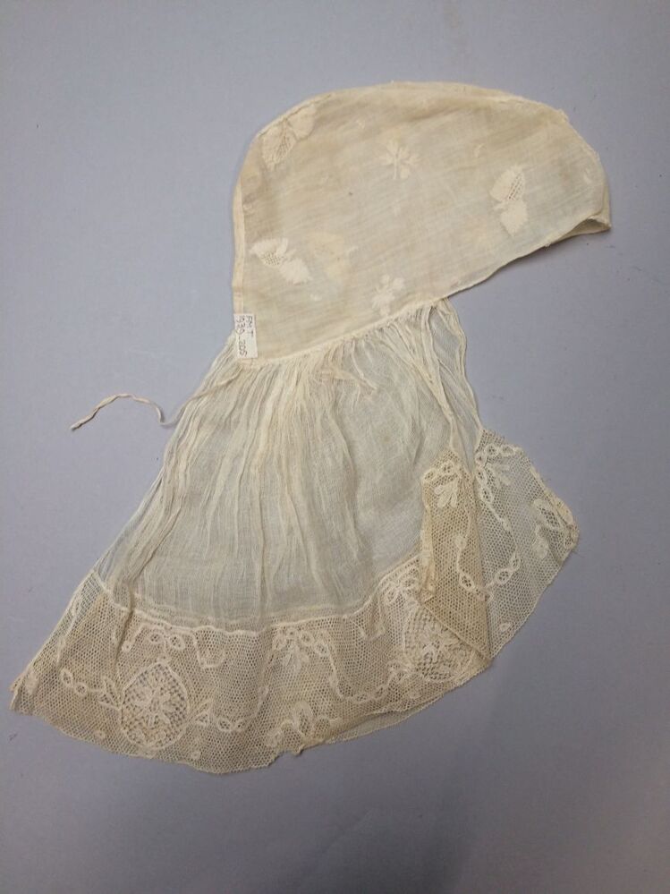 Kleine mutsen voor binnenshuis, met een enkele of dubbele sierstrook als rand aan de voorkant en tot de oren reikend; werden door vrouwen in de 18e eeuw gedragen. (AAT) https://data.cultureelerfgoed.nl/term/id/cht/63d7c4b6-1fa2-4798-b701-ea7115827662