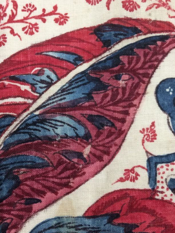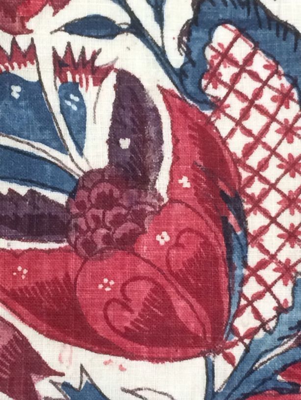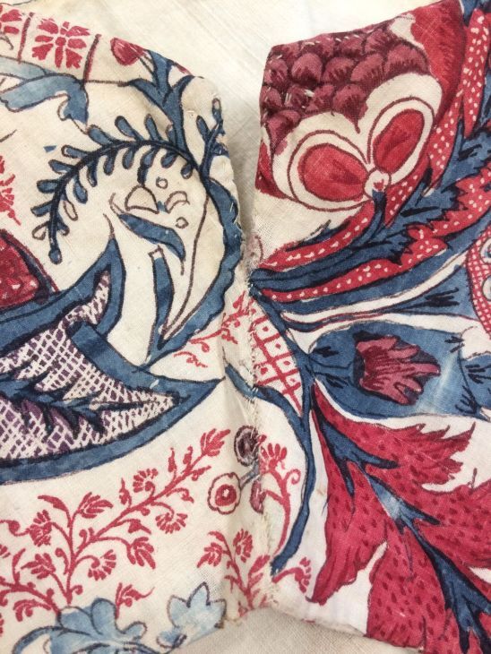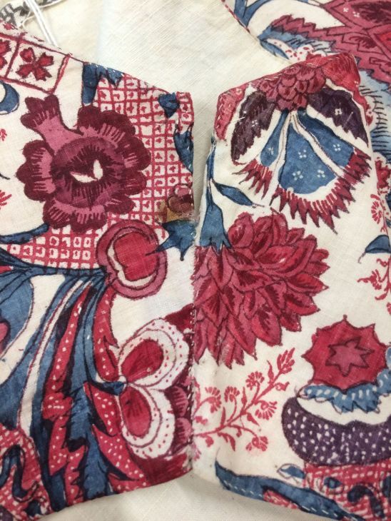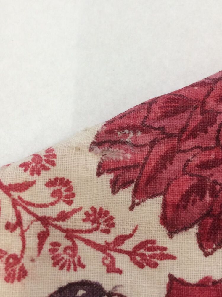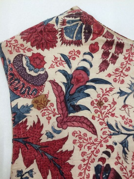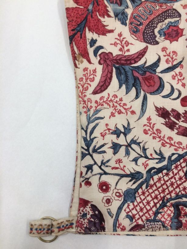 Sitsen vrouwenkroplap ofwel onderst, met uitwaaierende bloemmotieven op witte grond