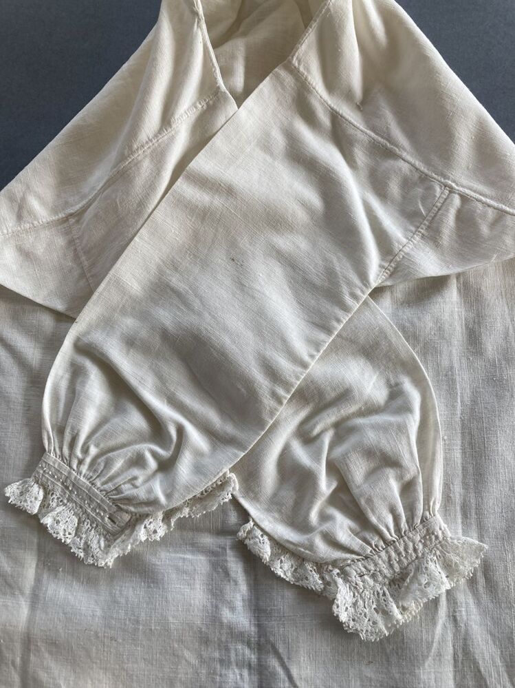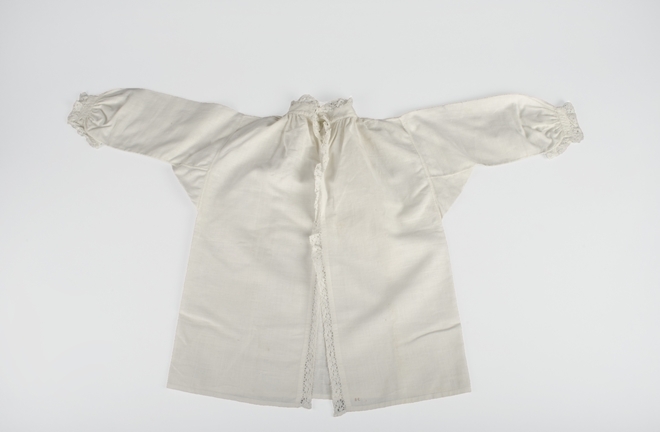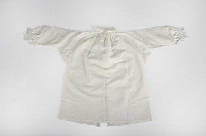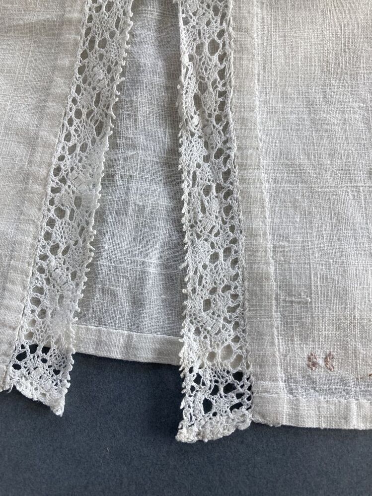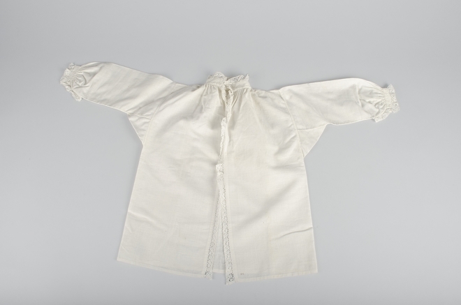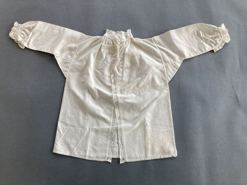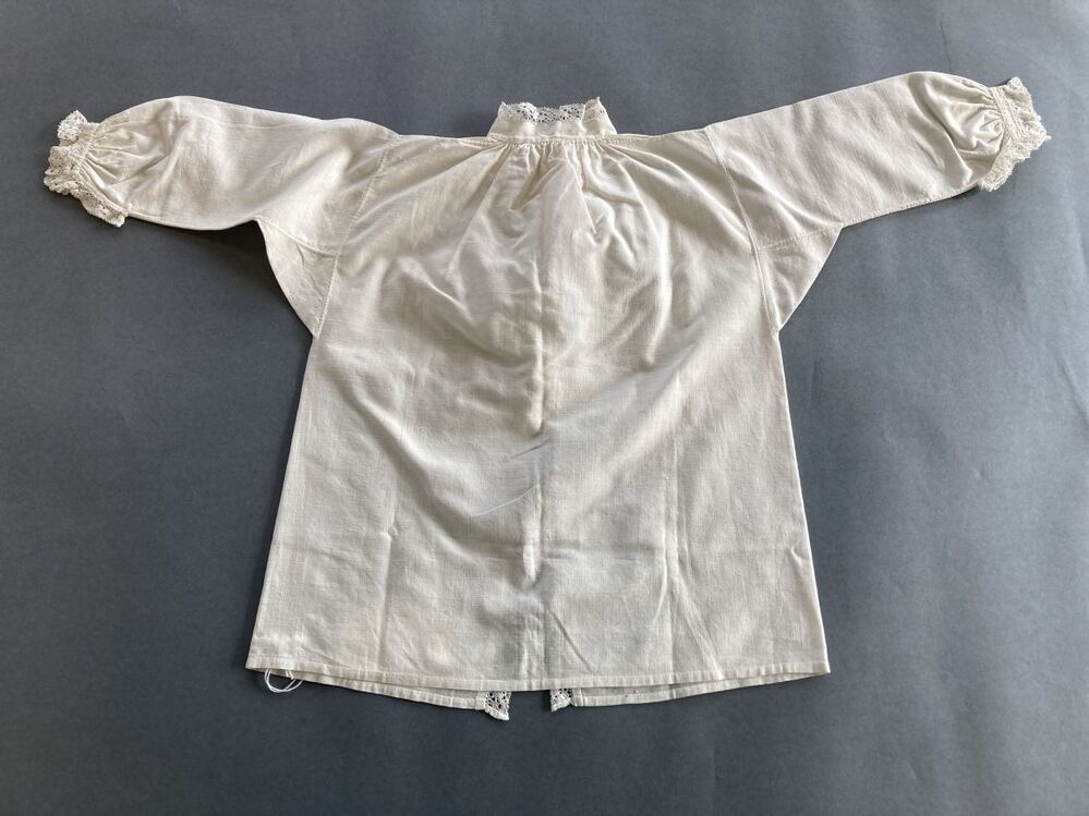 Jongenshemdje van fijn wit linnen, afgezet met clunykant