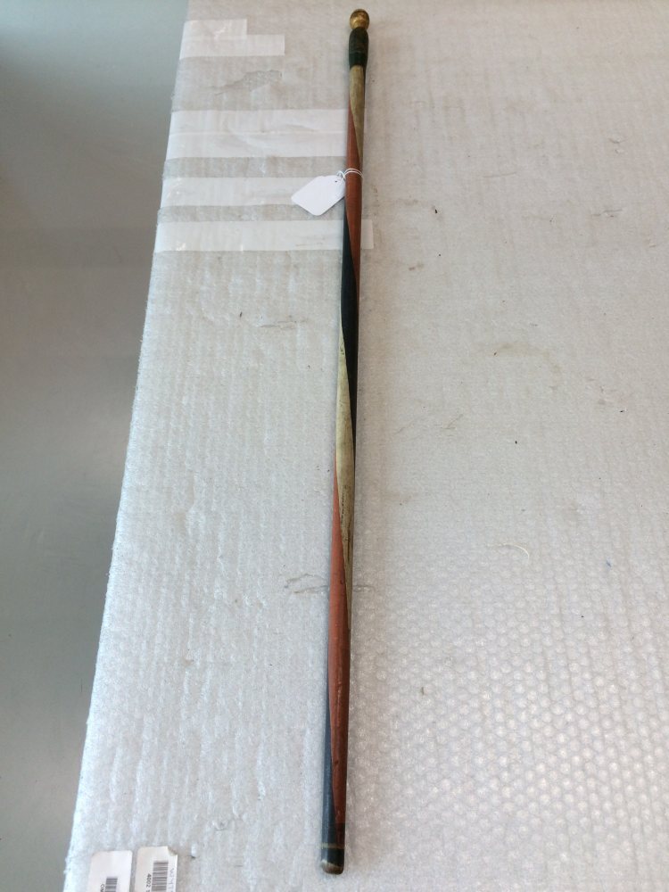 Dunne stok, naar de punt toe dunner wordend en op het einde voorzien van een gedraaide ronde knop. In spiralen ge- verfd in de kleuren rood, wit, blauw. De greep is groen geverfd en hierop is in vergulde uitvoering het wapen van Leeuwarden aangebracht. De ronde knop is eveneens verguld.