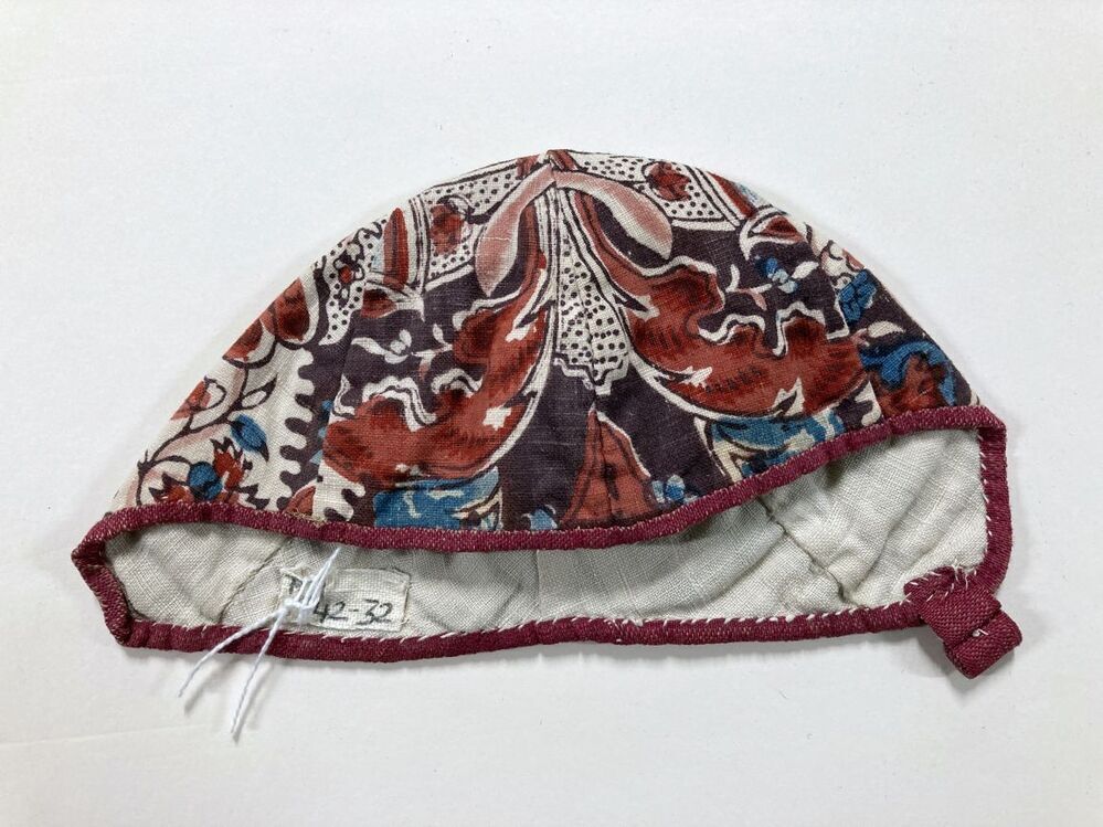 Bedrukt katoenen jongensmuts, met symmetrisch bizar patroon op witte grond