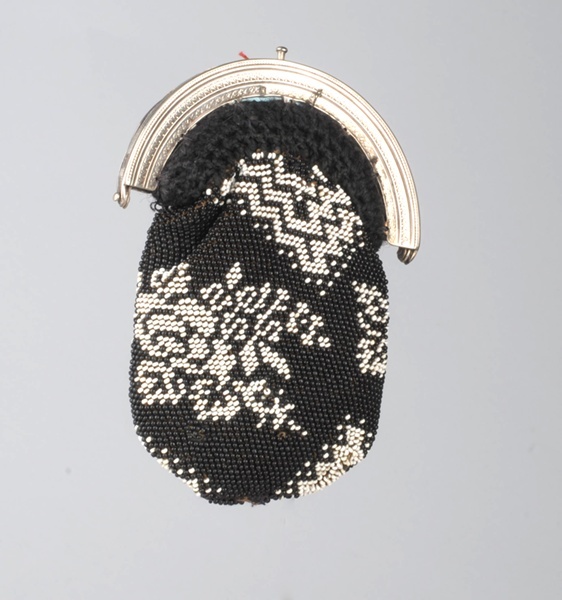 Zilveren beugel met zwart-witte kralenbeurs met bloempatroon