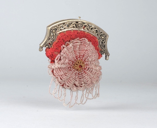 Beugelbeurs met rond beursje met doorzichtige kralen in cirkelvormig patroon