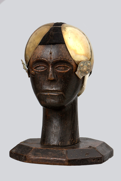 Houten kop om oorijzers op te passen (met zwart mutsje)
