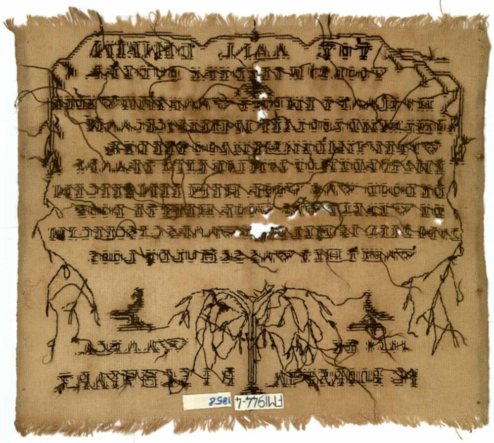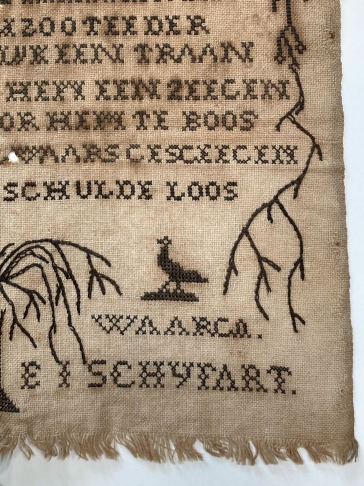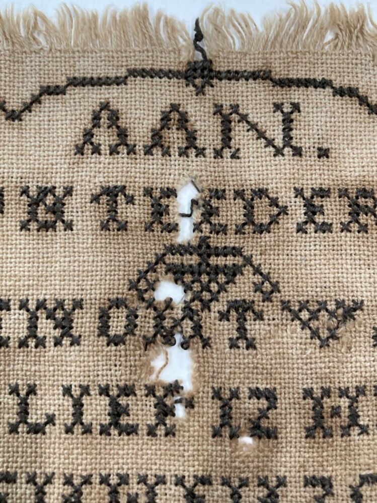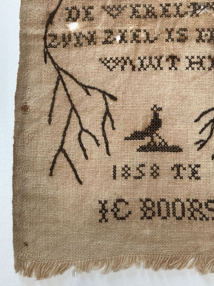 Borduurstuk met rouwtekst, 1858 te Warga