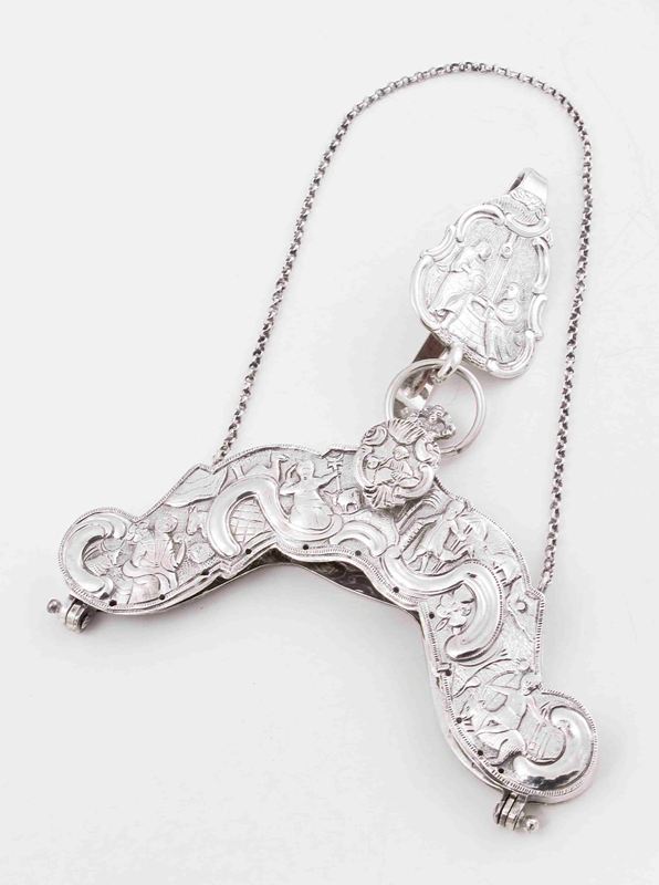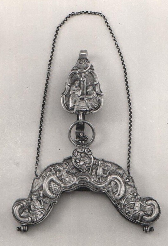 Tasbeugel waarop afgebeeld de vier werelddelen, Europa, Azië, Afrika en Amerika