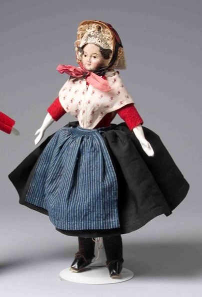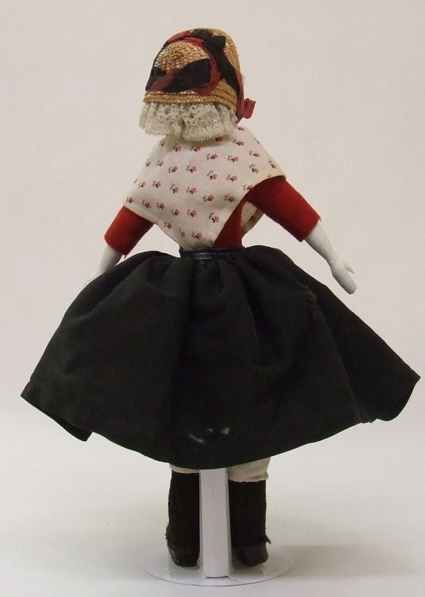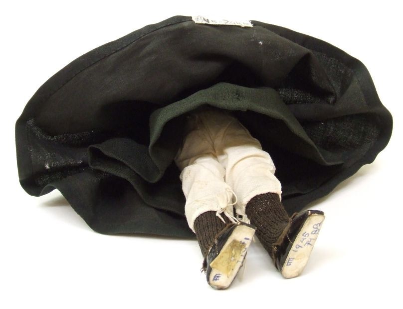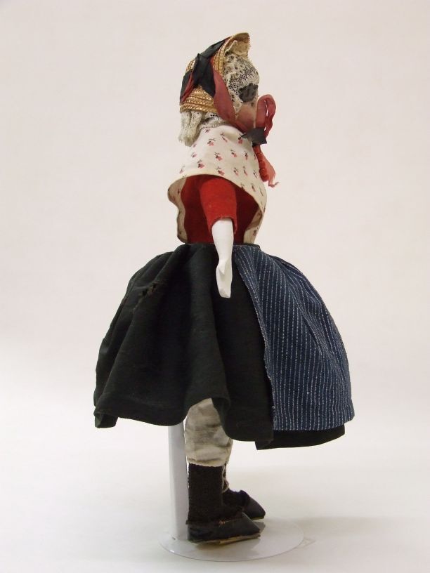 Pop van een meisje uit het Old Burger Weeshuis te Leeuwarden, van ± 1880, gekleed in de weeshuisdracht, een van twee popjes, jongen en meisje